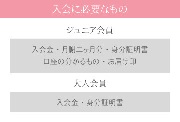 入会・各種申し込みの際には氏名・住所・電話番号などをお伺いいたします。